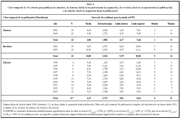 Con el fin de explicitar las conclusiones y reflexiones más importantes del estudio, seguiremos la lógica aplicada en los estudios previos del análisis de contenido de los veinticinco años de IA (García et al., 2002) y de los quince años de CE (García et al., 2004), pero en torno a Psicothema, haciendo reflexiones comparativas con las otras dos revistas, en cuanto a las metas, la autoría, los centros o equipos de investigación y autores, el género y metodología de los artículos o el tiempo para ver publicado un original.