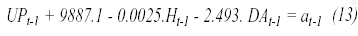 UPt= - 9887.1 + 0.0025.Ht + 2.493.DAt + at (2)