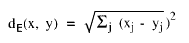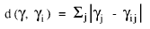 Sea γ, la sensación que produce un input percibido u, y sean γi las sensaciones que producen los distintos patrones ui, entonces si cada una es un vector con j componentes, podemos definir la distancia entre las sensaciones como:
